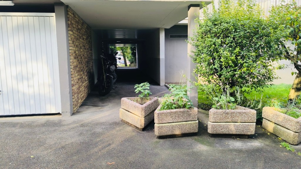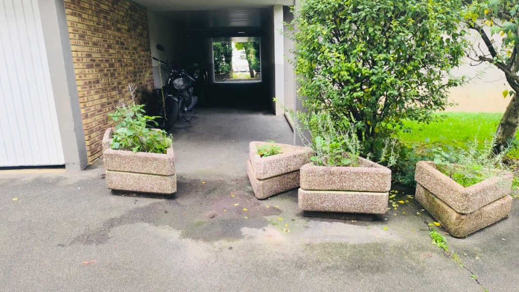 Les bacs à fleurs installés sous le porche escaliers I / J ont pour rôle de ralentir la circulation à la sortie de passage, et ainsi réduire les risques d’accidents.