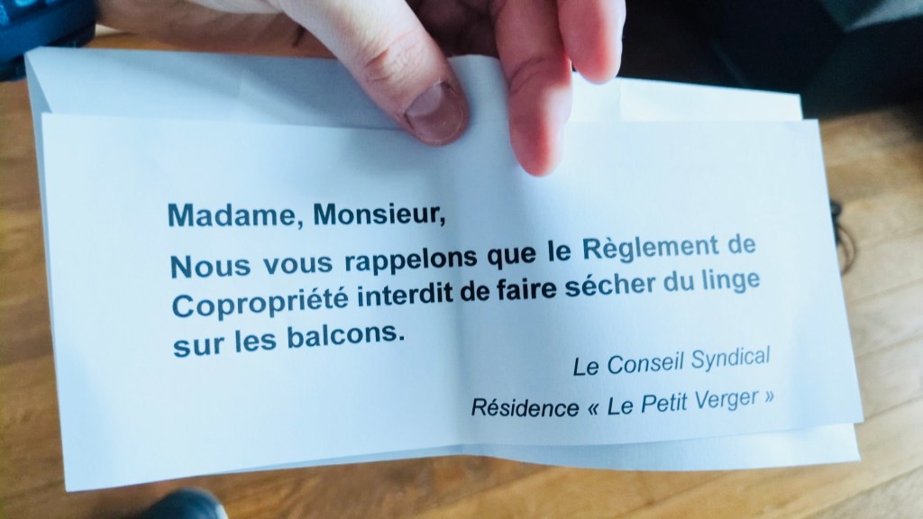 Nous précisons que le petit mot déposé dans certaines boîtes aux lettres (photo ci-dessous) n’émane pas du conseil syndical.